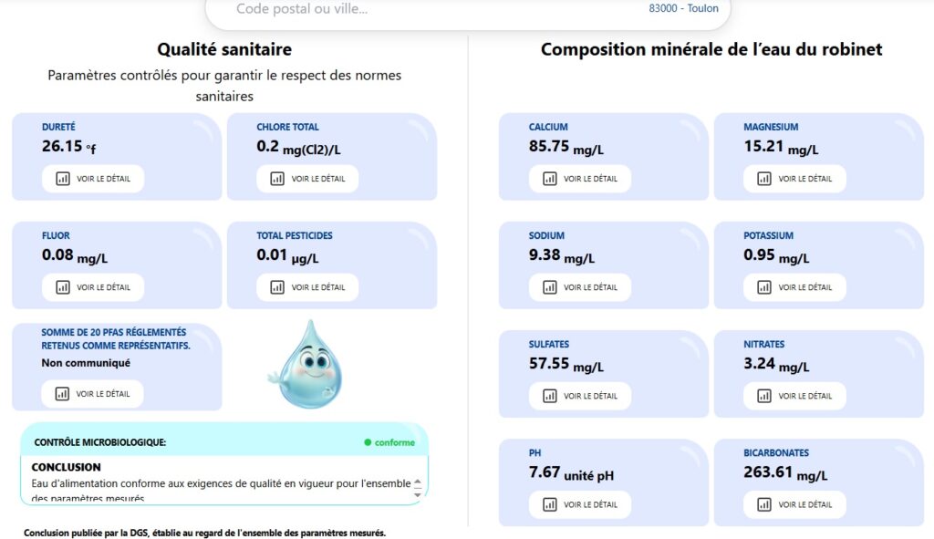 Voici l’exemple de la ville de Toulon dans le Var avec une eau….conforme !